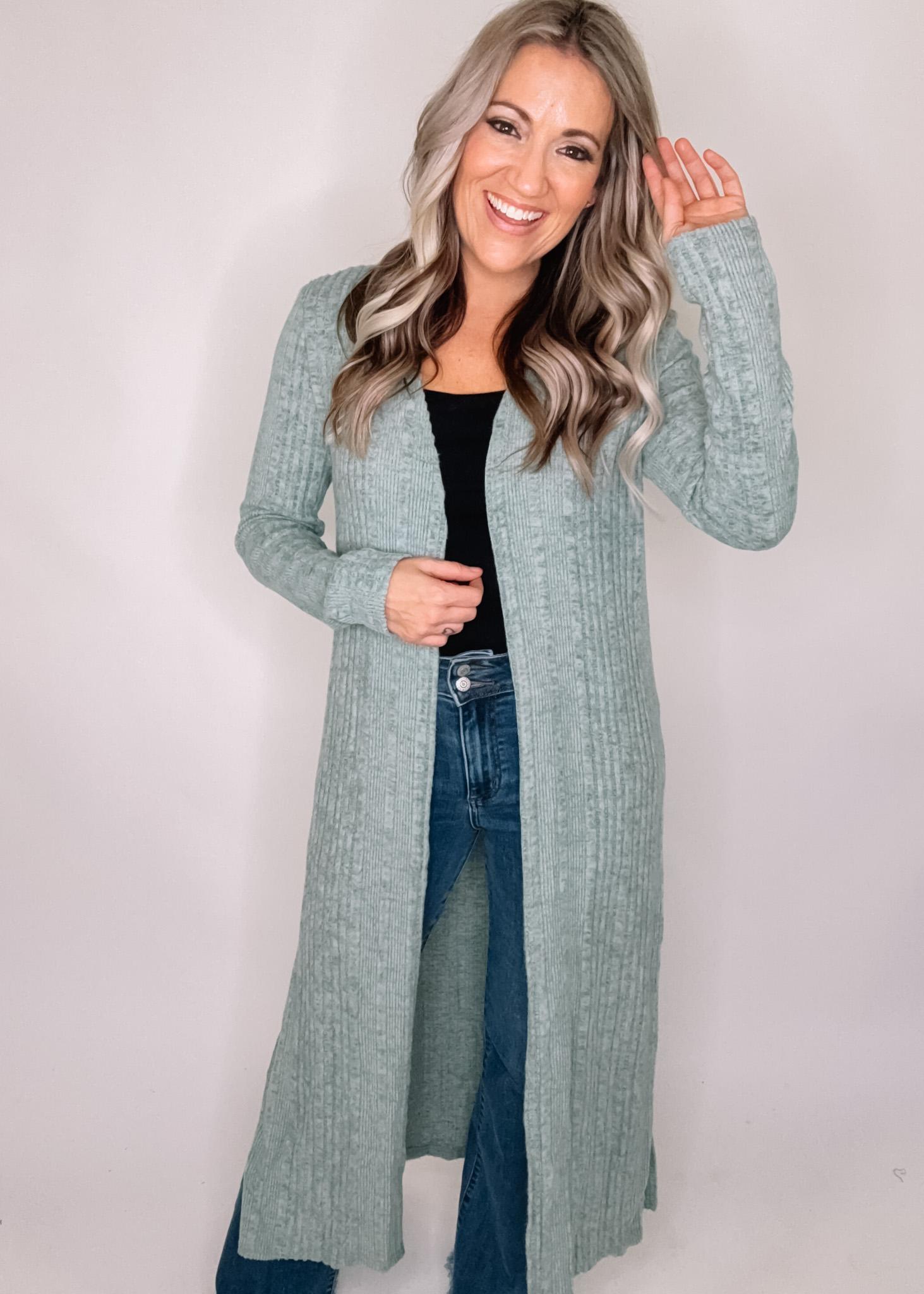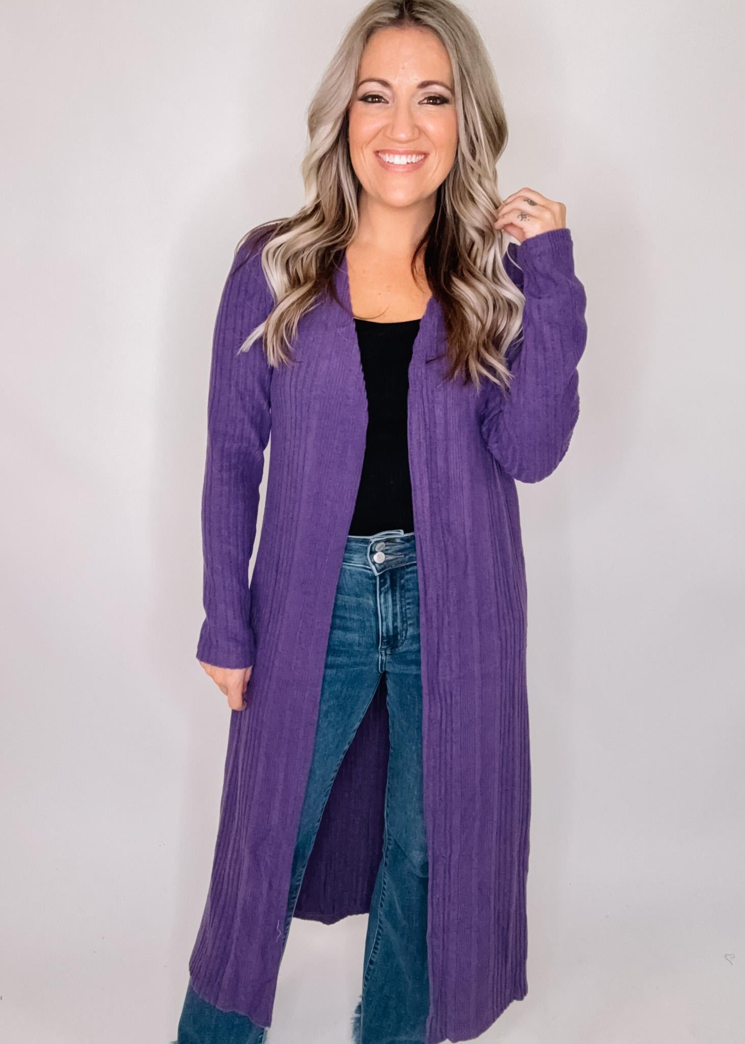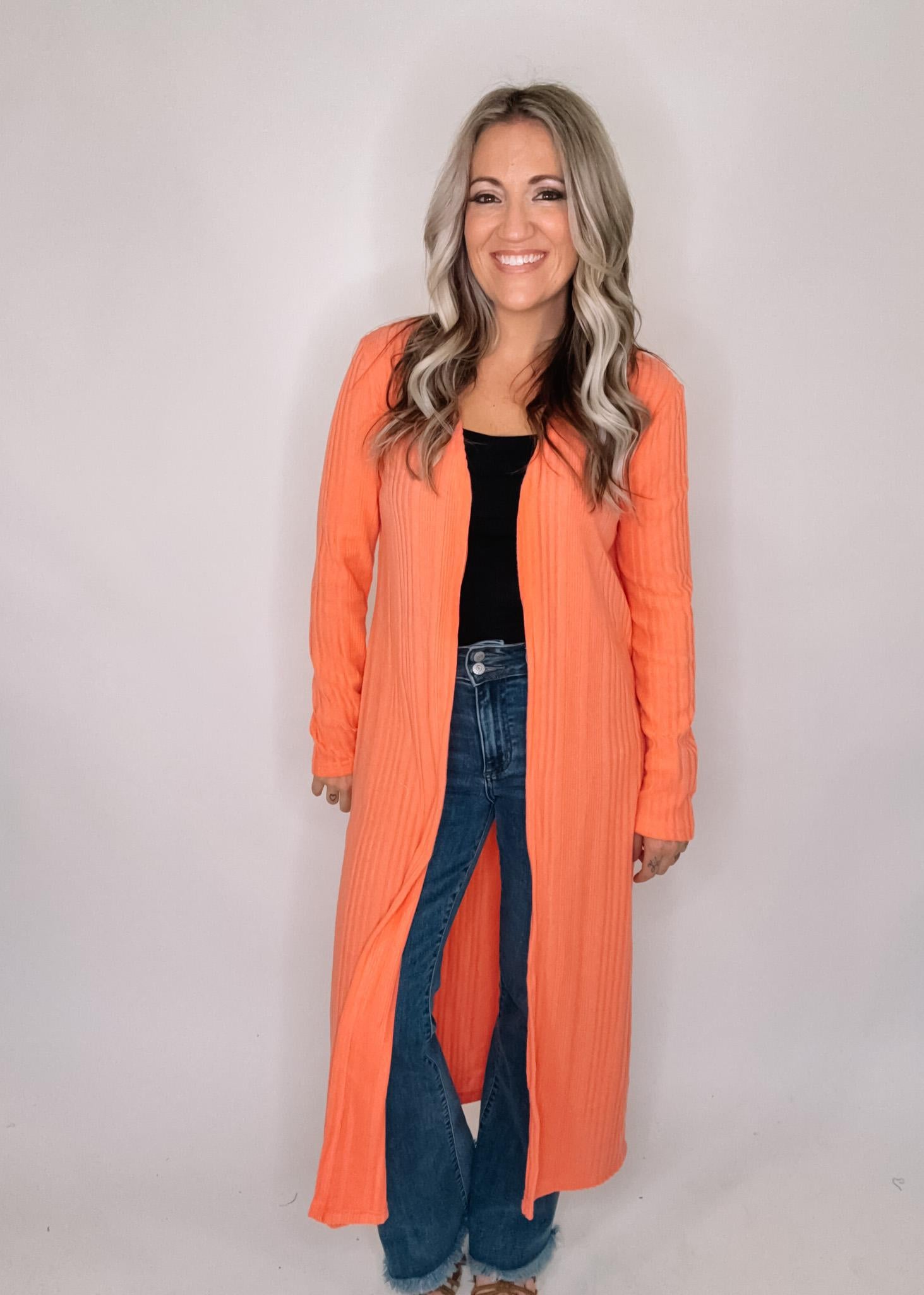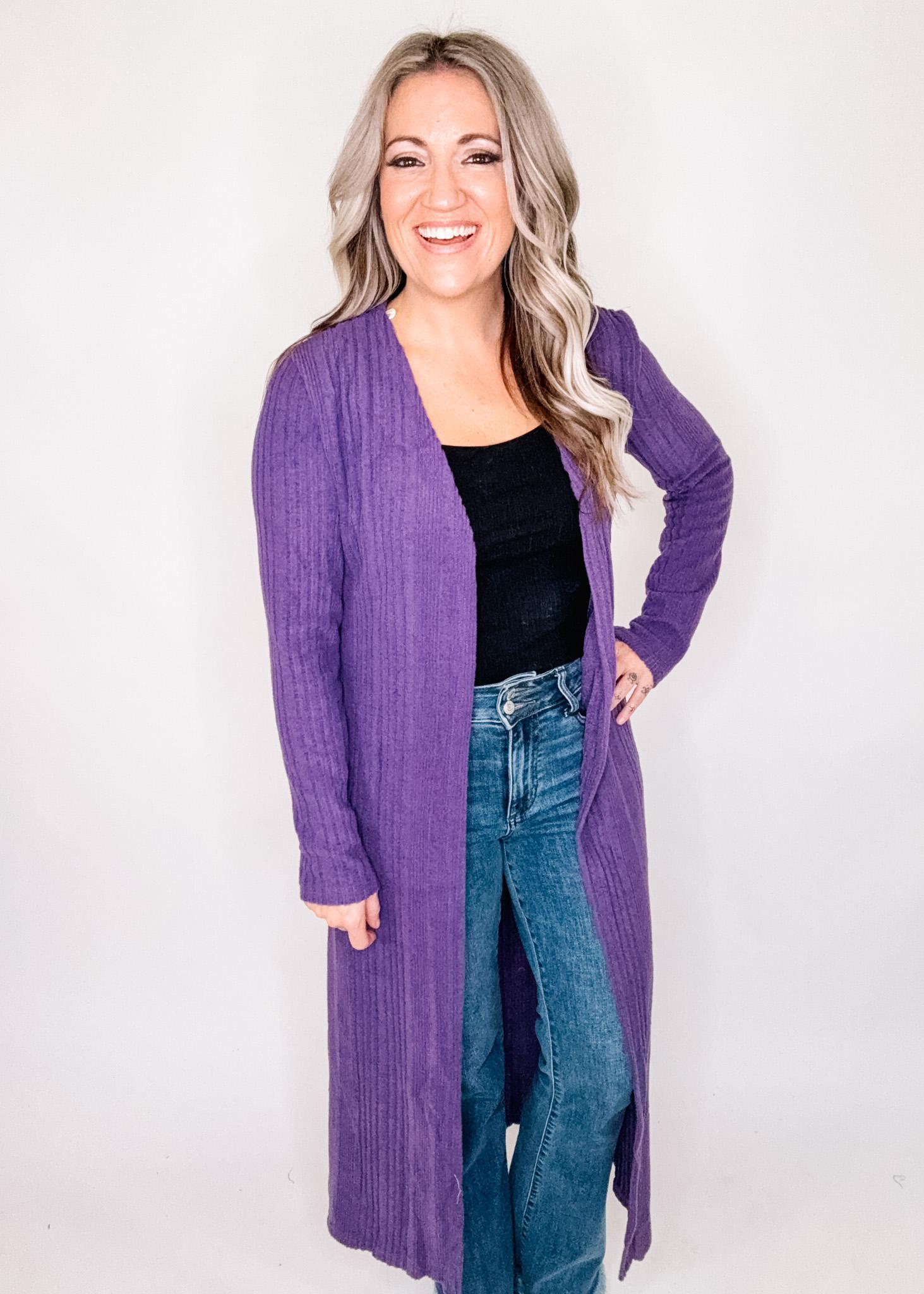 These classic dusters are so soft, stylish, and easy to wear from season to season. Layering over leggings, denim, or cute little dresses. These cardigans, are true to size, soft ribbed material, long sleeves with side slit detail, and a classic silhouette.