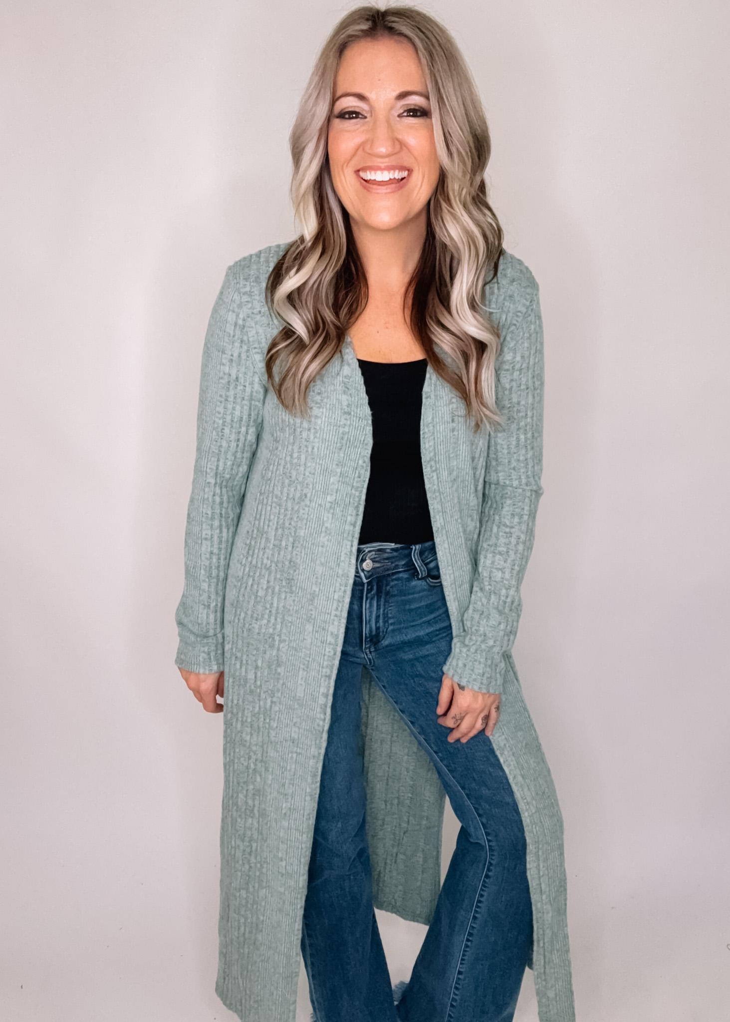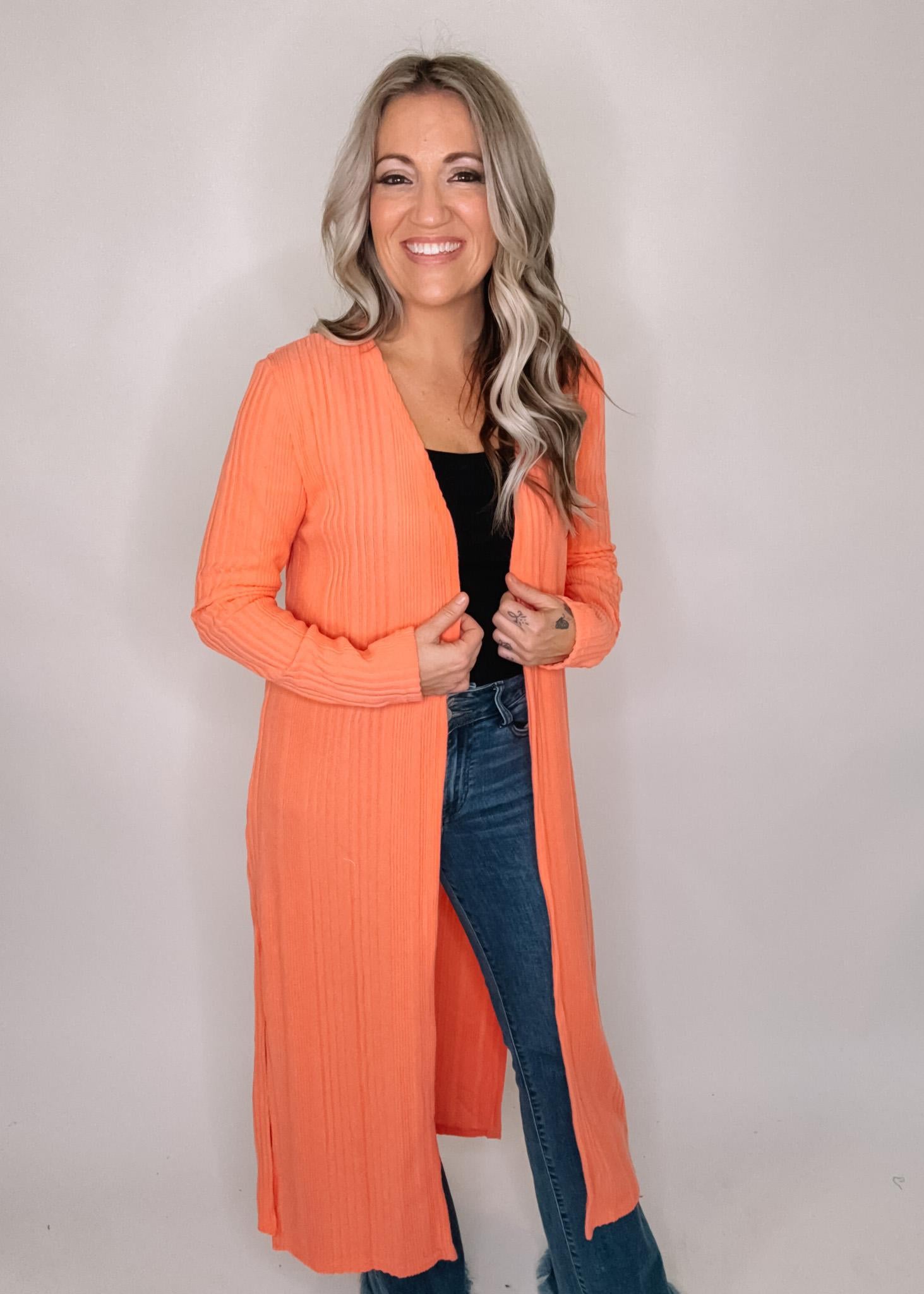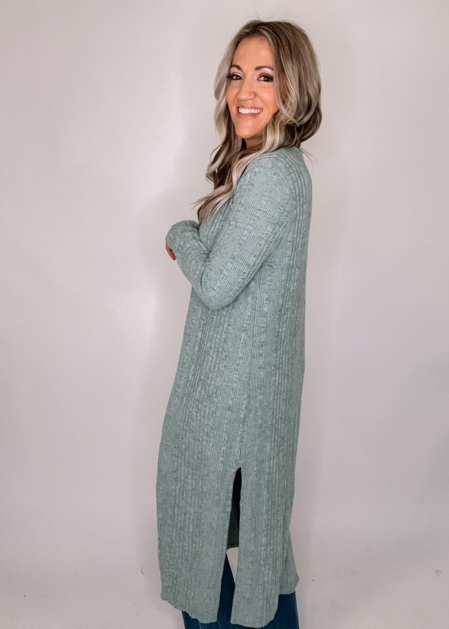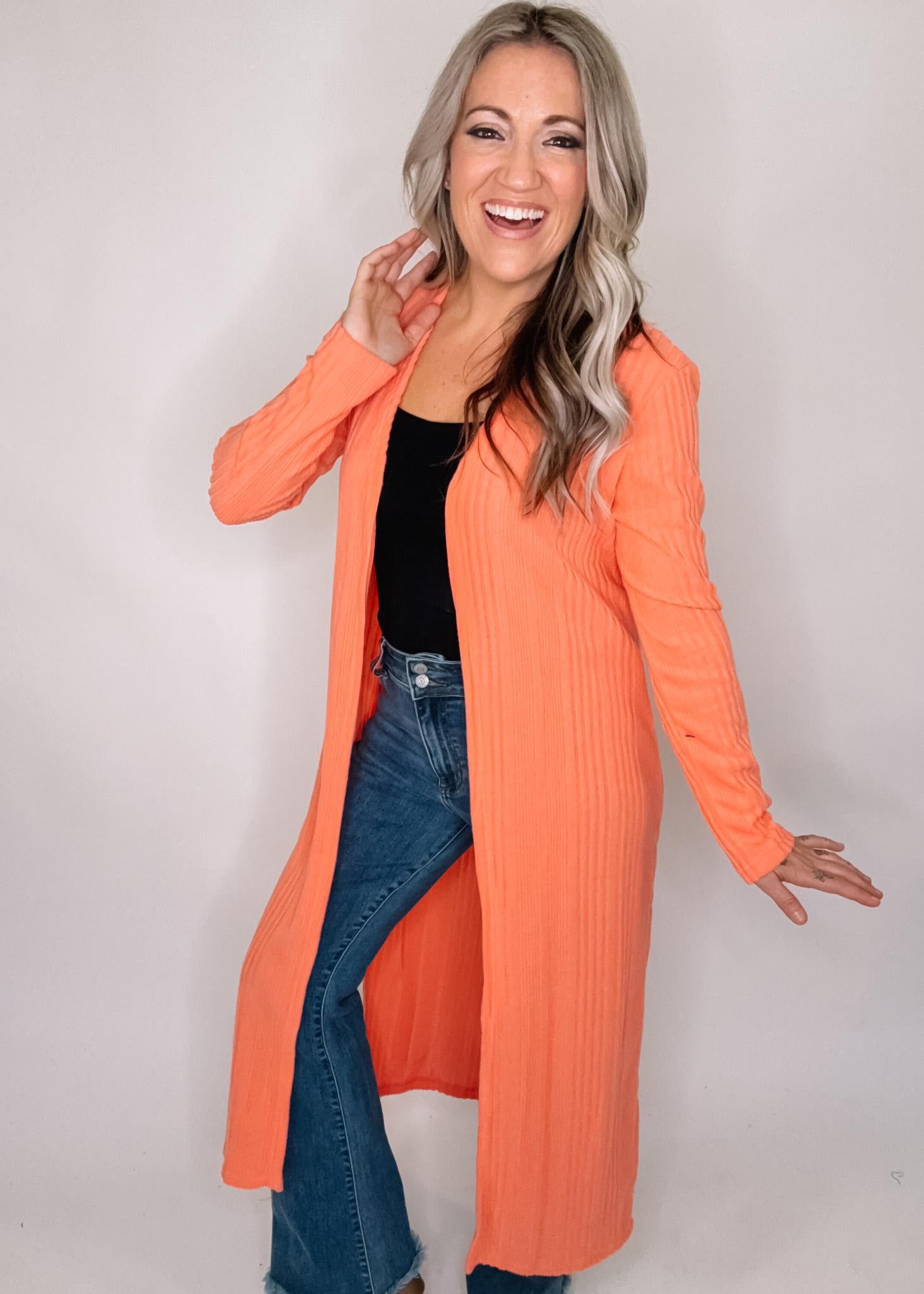These classic dusters are so soft, stylish, and easy to wear from season to season. Layering over leggings, denim, or cute little dresses. These cardigans, are true to size, soft ribbed material, long sleeves with side slit detail, and a classic silhouette.